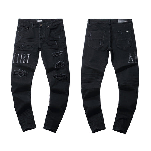 AM Jeans Cross Pattern Ripped Stretch Jeans