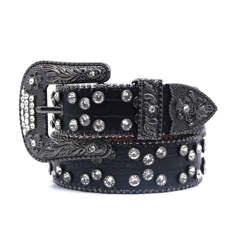 Hip-hop punk rhinestone belt casual cowhide single layer